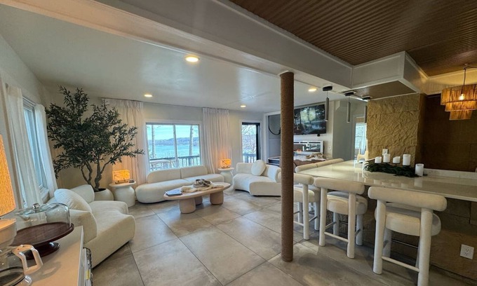 The dock is exclusive to the home and yours to enjoy as much as you want! You're welcome to bring/rent our boat and tie up to the dock for easy lake access. There is a boat launch on the same lake as our house where you can put your boat in the water and drive it over to the house. There is one culvert to go under so please just make sure your boat has a tower that can fold down or come off. Our part of the lake is expansive itself, so you can easily do any watersports you need on the water in front of the house without having to go back and forth onto the main lake unless you so choose. We do offer boat-pontoon rental and jetski rental. They are located right down our stairway to the lake for easy access. Boat rental is $800/day. Jetski is $150/day.