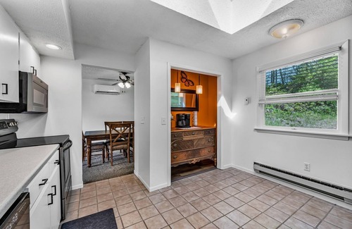 As you walk through the front door, you'll be greeted by a warm and inviting living room with comfortable seating and plenty of natural light. The fully equipped kitchen is perfect for preparing meals and features modern appliances, a skylight that floods the room with natural light, and plenty of counter space. We also have a dedicated workspace for those who need to get some work done during their stay.
