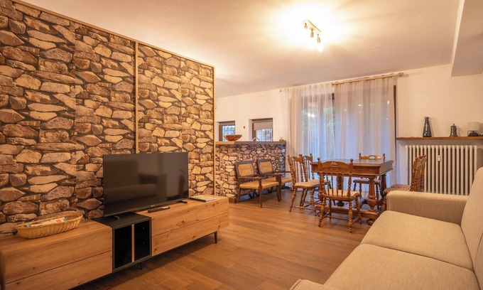 Charming and spacious studio apartment, thoughtfully designed to maximize space and finished with furnishings that evoke the perfect mountain atmosphere. The studio is located in a holiday setting surrounded by nature and overlooks the shared garden, which, due to its layout and location, offers a sense of privacy exclusive to the property. The apartment accommodates up to 4 guests with one double bed and a comfortable sofa bed.