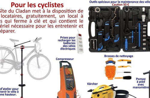 Also available a few meters from the room, a locked room to house bikes and motorbikes, with all the equipment necessary to maintain and repair bikes: two workbenches, a workshop stand to keep the bike at the right height, specific cleaning brushes, a compressor, a Kärcher, a foot pump with pressure gauge, electric sockets to recharge the batteries of electric bikes.