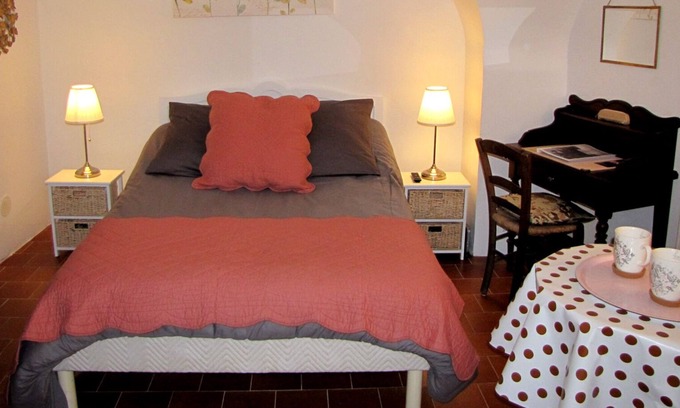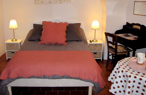 The bedroom is located on the ground floor of the Gîte du Cladan, a beautiful stone house, and has an independent entrance from the rest of the house, with no possible access to other parts of the building.