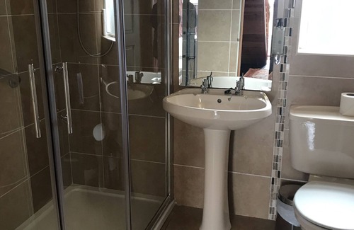 Atlantic View Cottage No 6 sleeps 5 people in 2 double bedrooms and 1 single bedroom. The single bedroom is upstairs along with the living area (main bathroom + en-suite)