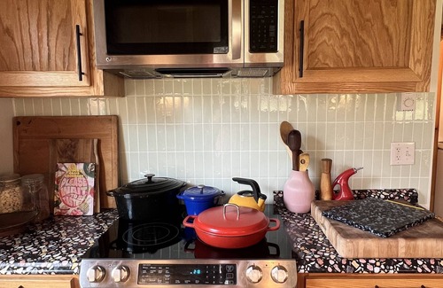 Our kitchen is fully equipped with a Nespresso machine (original pods), French Press, tea kettle, tons of cookware and dishes for dinner parties.