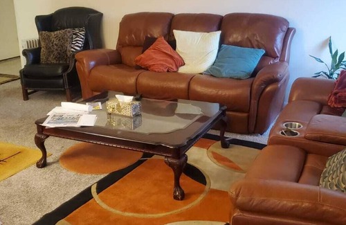 This one of a kind gem, is in Downtown Bethesda, a walk from all activities! Large living room with all recliner leather chairs, a patio, full kitchen with utensils, coffee maker, comfy rooms, bathroom