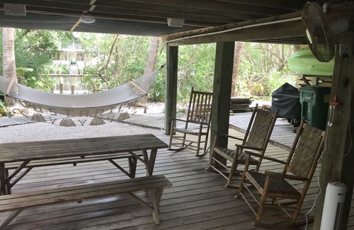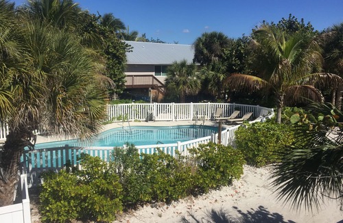 BEST VALUE ON THE ISLAND! Experience a tropical escape to a special barrier island just between Sarasota and Fort Myers. Accessed only by a private ferry or your own boat (FREE dock slip with 9' beam), this get-away is the perfect place to unwind - Florida Style! Island House offers convenience and low-key charm. Duplex unit surrounds a sparkling fresh water pool. A private boat slip in a protected canal directly off the Intracoastal Waterway is at your back door. The uncrowded white sand gulf beach is steps across the street from your front door. Make your plans: Walk on the beach, collect pocketfuls of shark’s teeth, cast-net for bait and land a snook right in the surf. Or take your boat five miles south on the Intracoastal to Boca Grande for a day of some world-class tarpon fishing. Ride a bike around our 4- 1/2 mile island . Or rent a golf cart and do it without spilling your drink! If it’s too hot, relax in hammock under our unit, or (for the beach impaired) turn on the HD Cable TV and chill out.