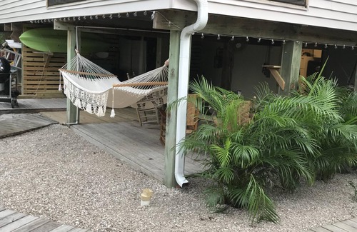 The Green’s Island House #1 amenities include:: HD cable service to 50" LCD TV in the living room, 40' LCD in the master br, plus a 20' flatscreen and Amazon FIreStick in the guest bedroom, CD Stereo entertainment system, FREE High-speed wireless internet access, central A/C, ceiling fans in every room. Fully-equipped kitchen including: stainless appliances, microwave, drip coffee maker (basket) PLUS a Kuerig machine, toaster, blender, dishwasher, and garbage disposal, dining room table seats four, Patio table seats four on upstairs deck, Picnic table on downstairs deck, Laundry room with full size washer/dryer; Freshwater swimming pool*, Private dock slip at end of protected, Mangrove-lined canal; Extra outdoor hot/cold shower, two new beach-cruiser bicycles for use, Full-size Weber charcoal kettle barbecue grill, four beach chairs, umbrellas, hammock for under house. Golf cart rentals are also available on island.