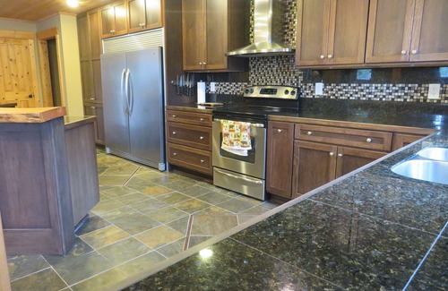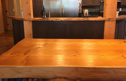 The open kitchen comes fully equipped with everything you need to serve 12 guest (minus the food, of course). The dining table seats up to 14 people and the family living room has 2 couches and 2 recliners that centers around the fireplace. The main floor master bedroom has a king bed and separate couch with a 5-piece master bath, including a claw foot tub and open shower. The main floor guest room has both a queen bed and a twin bed. Upstairs are three more bedrooms with a queen bed in one, a king bed in another and a queen bed plus bunk beds in the last bedroom. Also upstairs are a two bathrooms, one with a tub and one with a shower, a loft with a couch, chairs and tv complete with family friendly DVDs and a foosball table and chess/checkers table.