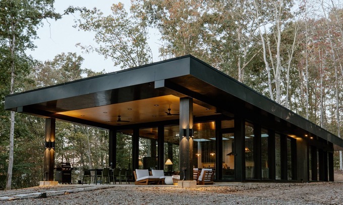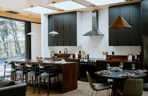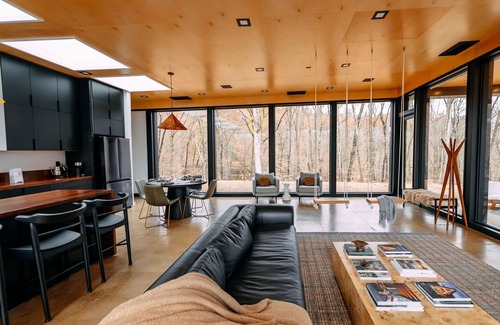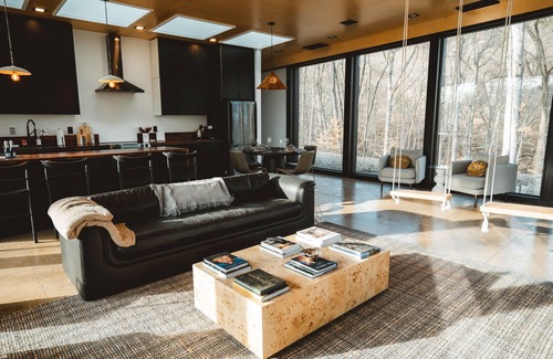 Columbus. Designed by renowned Cincinnati-based architect, Jose Garcia, the house is an architectural marvel with beauty and simplicity at its core. Nestled atop a secluded hill, the house blends simple yet stylish interiors with natural light, floor-to-ceiling infinity windows, and skylights. The outdoor covered patio offers picturesque views, shaded by a natural-tone birchwood ceiling. Must be 25 years or older to rent. 4WD/AWD Recommended in all seasons.