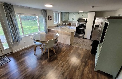 Unwind in Glenburn at this lovely apartment. With 2 queen beds in 2 bedrooms, 3rd bedroom with a twin day bed and 2.5 bathrooms equipped with showers and hair dryers, guests can relax comfortably. Amenities like AC, WiFi, a hair dryer, and a washer/dryer machine are available for your convenience. A spacious living room, separate sitting room and beautiful deck will make your stay memorable. We hope you'll enjoy your stay at our apartment.