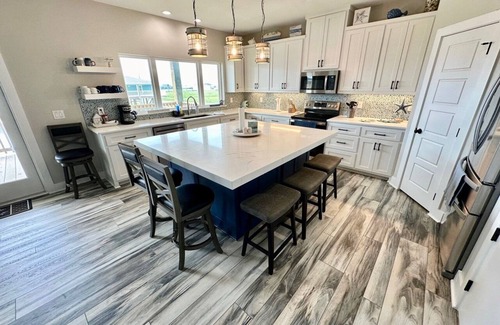 Anchors Aweigh (No Pool) provides room for the larger family or corporate guests. A 5 Bedroom, 3.5 Bath Home, there are 3 bedrooms with Kings, 1 bedroom with Queen and a 5th smaller bunk room for kids or overflow which has Twin bunks plus a Twin trundle. There is so much room in this home both inside and out with expansive decks providing one of a kind views. Located in Larry's Harbor this home will be a go to for many of our discriminating guests who enjoy both clean new feels with more than enough room to spread out. Private boat ramp access included. Note the pool located next to the property is not part of this rental and considered private property no entry. Outdoor cameras in use. Once Again: Note NOT INCLUDED NEXT DOOR POOL that is privately owned and not included as part of this rental.