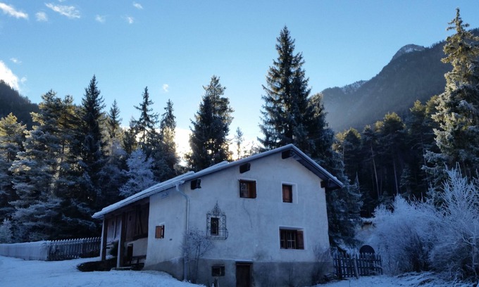 Old typical Engadine mill situated in a fairy tale atmosphere at the limit of the forest that goes to Val D'Uina, rich of wonderful landscapes and breathtaking views, set among the rocks, the woods and the stream that flows impetuous. The house is at the end of a small but quaint old village of Engadine with its painted houses, old barns and ancient roads. Retains all the charm of the cosy and warm Engadine houses fragrant of cedar. Even the antique furniture typical of the region adds to the atmosphere the taste of the past. Equipped with all the comforts (there is also WIFI Internet), restored during the years and completely renewed in 2013, the house can accommodate up to 12 people, having 5 comfortable bedrooms and 2 bathrooms, one with bath and shower, the other one with shower. It is a house with 2 floors with a large garden all around, inside of which flows a small stream that creates a nice atmosphere of intimacy and direct contact with nature. Totally silent and reserved, but 10 minutes from all amenities, including an important ski resort (Motta Naluns in Scuol), a Wellness Center (Bogn Engiadina) with SPA, saunas, pools and therms, one of the largest in Europe.