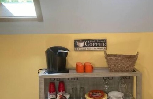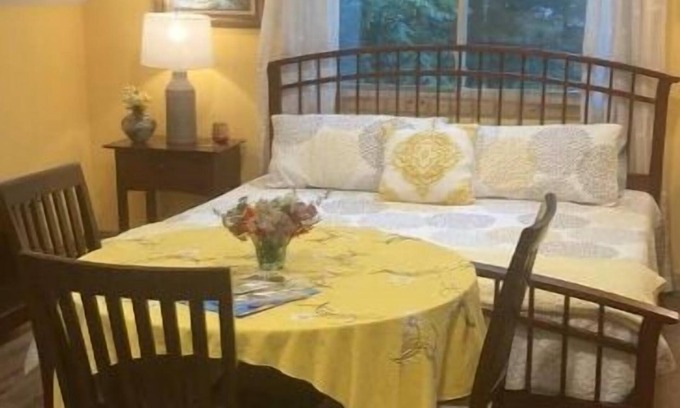 Cozy peaceful suite located in beautiful Lake Ann, surrounded by state land with a great hiking trail, as well as the Platte River. Hammocks, a fire pit and seating area in the river make this a fun place to enjoy some time away! The room offers a king size bed, kitchen area with mini fridge, sink, microwave, coffee bar and toaster oven, as well as a dinette set and Futon for seating.