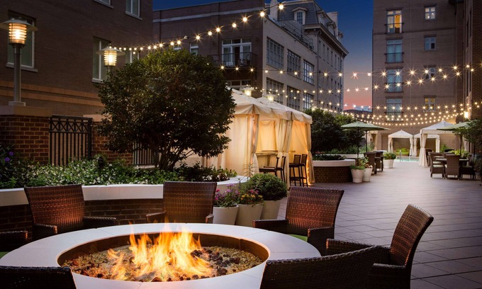 Recreational amenities at the hotel include an outdoor pool and a 24-hour fitness center.