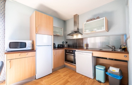 - A fully-equipped kitchen with electric kettle, oven, microwave, toaster, dishwasher, hob...