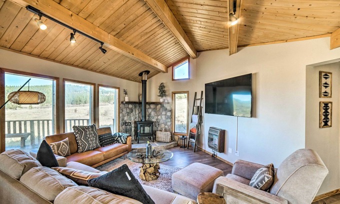Your Angel Fire getaway starts at this peaceful retreat! This relaxing 3-bedroom, 3.5-bathroom vacation rental cottage features stunning 360-degree mountain views so you can easily immerse yourself in New Mexico's great outdoors. Cozy up to the wood-burning furnace, cook up dinner in the fully equipped kitchen, or gaze out at the gorgeous mountain views while relaxing in the hot tub. You'll be having some 4-season fun in no time thanks to the Angel Fire Resort that's just over 2 miles away!