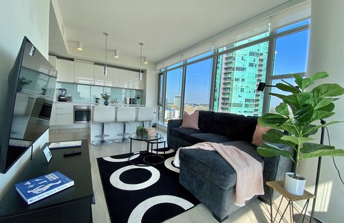 - Luxury Corner Unit DT w Tower Views! Near Stampede, BMO Centre! FREE Banff Pass, Parking, Wine!