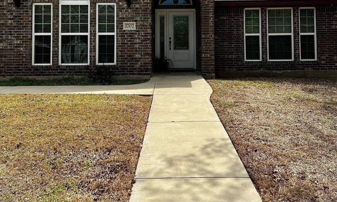 Howdy! And welcome to your home away from home. Whether it is for a personal weekend getaway or for a big Aggie game day weekend celebration! Enjoy your stay with the whole family in this beautiful 3 bedroom, 2 bath, 2000 sq. foot home! Features include ceramic tile flooring throughout the house & carpet in the bedrooms. A gorgeous kitchen with a bar area, gas range, a huge island, & an attached eating area that seats 4 people. Enjoy a nice family dinner in a sweet & secluded dining area with a huge dining table that seats 8 people. Kitchen is stocked with essentials. You will have complete access to the whole house including a laundry room with a Samsung front loading washer & dryer. Enjoy family time or the big game in the spacious living room area with access to WiFi included in your stay. This home includes 2 full, clean, & modern bathrooms. Master bathroom includes a luxurious glass walk in shower & a huge drop-in tub. Bedrooms include 4 comfortable beds, 2 queen, & 2 full that sleep up to 6 people. And a huge sectional in the living area that sleeps up to 2 people. Located in the heart of Bryan. And College Station being less than 5 miles away. RELLIS Campus, Texas A&M Campus, & Kyle Field being 12-18 minutes away. Northgate District & access to tons of restaurants & popular bars only 14 minutes away or less.