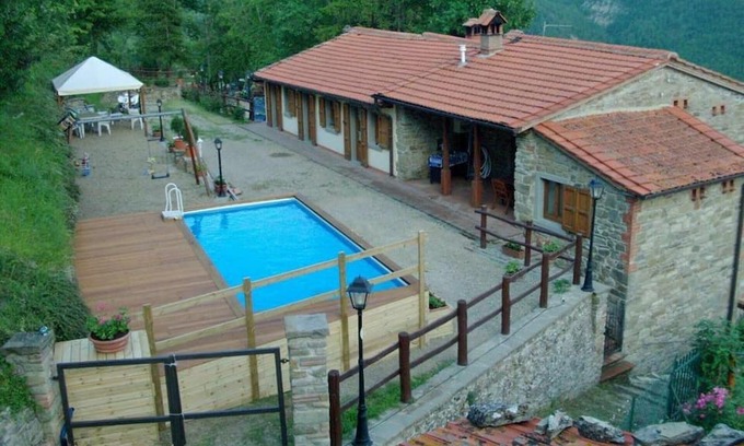 Independent stone farmhouse situated in a small village on the Casentino National Preserve, a beautiful green area approx. 50 km from Florence away. This property is quietly situated and offer nice panoramic views over the surrounding valleys and woods. The villa provides a nice terraced garden with the swimming-pool and welcoming interiors furnished in a rustic style.