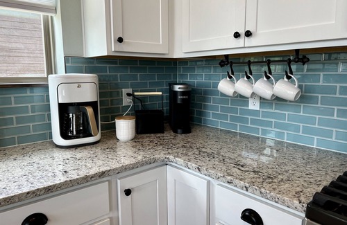 * Amenities include a fully equipped kitchen upstairs, and a second kitchen downstairs, free Wi-Fi, 8 flat-screen smart TVs, one master bedroom that is wheelchair compliant complete with roll-in shower and sink, an extended deck and patio with lake views, outdoor gas fireplace, a wood-burning fire pit, charcoal grill, game room with a pool table and shuffleboard, a gas fireplace, air conditioning, central heating, in-unit laundry machines, plenty of parking available and more.