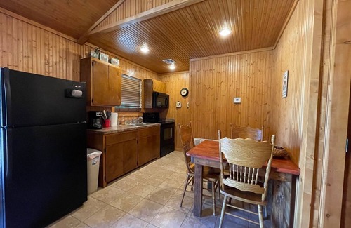 All cabins have full kitchens with a refrigerator and electric stove. They are stocked with common dishes, pots and pans that you may need during your stay. Your stay will be comfortable because each cabin has central heat and air conditioning.