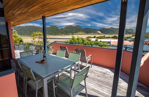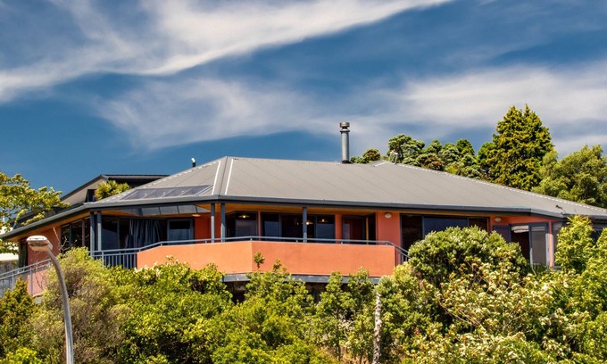 Situated in the hills above Collingwood village, experience the Golden Bay Views at this vibrant holiday home!