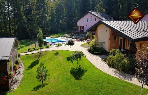 Providing garden views, Apart-club Zora in Bardejovské Kúpele provides accommodations, an open-air bath, a garden, and barbecue facilities. This property offers access to a balcony, table tennis, free private parking, and free Wifi. Guests can make use of the picnic area or the seasonal outdoor pool, or enjoy views of the mountain and pool. The condo hotel will provide guests with air-conditioned units with a wardrobe, a kettle, kitchenware, a safety deposit box, a flat-screen TV, a terrace, and a private bathroom with a walk-in shower. There's also a well-equipped kitchenette in some units equipped with a microwave, a fridge, and a stovetop. At the condo hotel, all units come with bed linen and towels. A selection of options including warm dishes, fresh pastries, and juice are served for breakfast, and breakfast in the room is also available. Guests at the condo hotel will be able to enjoy activities in and around Bardejovské Kúpele, like fishing, hiking, and walking tours. Skiing and cycling can be enjoyed nearby, while a private beach area and ski storage space are also available on-site. Nikifor Museum is 21 miles from Apart-club Zora, while Krynica Zdroj Train Station is 22 miles from the property. Kosice International Airport is 55 miles away, and the property offers a paid airport shuttle service.