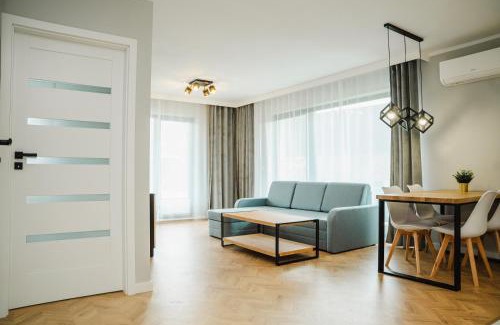 Apart Harmony - Apartamenty Bałtyckie Tarasy enjoys a location in Władysławowo, 1.3 miles from Chłapowo Beach and 23 miles from Gdynia Harbour. There's a private entrance at the apartment for the convenience of those who stay. The apartment provides rooms with air conditioning, free private parking, and free Wifi. All units include a seating area, a flat-screen TV, a fully equipped kitchen, a dining area, and a private bathroom, while some feature a terrace or a balcony. A dishwasher, an oven, and microwave are also provided, as well as a kettle. At the apartment complex, all units are equipped with bed linen and towels. Shipyard Gdynia is 25 miles from the apartment, while Gdynia Central Railway Station is 25 miles away. Gdańsk Lech Wałęsa Airport is 39 miles from the property.