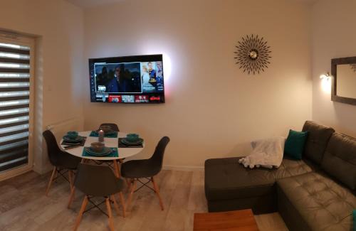 A 8-minute walk from Sianozety Beach in Sianozety, APARTAMENT 5 MÓRZ SPA - NA FALI features accommodations with access to a sauna, hot tub, and hammam. With garden views, this accommodation provides a terrace. The apartment also offers free Wifi, free private parking, and facilities for disabled guests. This apartment includes 1 bedroom, a living room and a flat-screen TV, an equipped kitchenette with a dining area, and 1 bathroom with a walk-in shower and a washing machine. Towels and bed linen are offered in the apartment. The property has an outdoor dining area. Guests can swim in the indoor pool, go cycling or hiking, or relax in the garden. Town Hall is 8 miles from the apartment, while Kołobrzeg Railway Station is 8.6 miles from the property. Solidarity Szczecin-Goleniów Airport is 71 miles away.