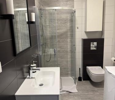 Apartament Baltic Park is located in Pogorzelica, just a 4-minute walk from Pogorzelica Beach and 27 miles from Town Hall. This beachfront property offers access to a balcony and free private parking. The property features a children's playground and outdoor furniture. With free Wifi, this apartment offers a flat-screen TV, a washing machine, and a fully equipped kitchen with a dishwasher and oven. Towels and bed linen are featured in the apartment. This apartment is allergy-free and non-smoking. A mini-market is available at the apartment. Guests at the apartment can enjoy fishing and hiking nearby, or make the most of the sun terrace. Kołobrzeg Railway Station is 28 miles from Apartament Baltic Park, while Kolberg Pier is 28 miles away.