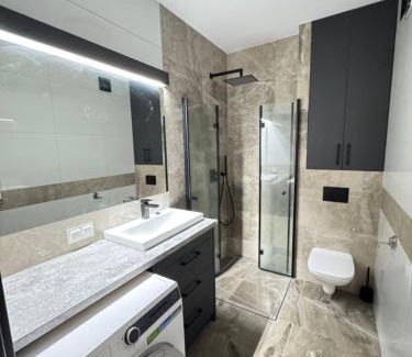 Apartament Gdańsk Stogi Nowy dla Dwóch Osób Blisko Plaży offers accommodations in Gdańsk, 1.4 miles from Stogi Beach and 3.2 miles from National Maritime Museum. This beachfront property offers access to a terrace and free private parking. Long Bridge is 3.5 miles from the apartment and Neptune Fountain is 3.7 miles away. The apartment features 1 bedroom, a fully equipped kitchen with a microwave and a fridge, a washing machine, and 1 bathroom. Towels and bed linen are featured in the apartment. This apartment is allergy-free and non-smoking. Polish Baltic Philharmonic is 3.3 miles from Apartament Gdańsk Stogi Nowy dla Dwóch Osób Blisko Plaży, while Green Gate is 3.5 miles away. Gdańsk Lech Wałęsa Airport is 17 miles from the property.