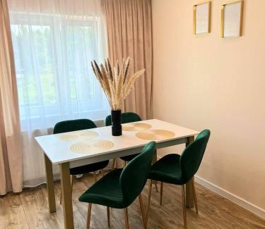 Apartament Gold - Góry Sowie - Głuszyca is located in Głuszyca, just 15 miles from Książ Castle and 18 miles from Świdnica Cathedral. This property offers access to a balcony, free private parking, and free Wifi. Sztolnie Walimskie "RIESE" is 9.3 miles from the apartment. This apartment includes 1 bedroom, a living room and a flat-screen TV, an equipped kitchen with a dining area, and 1 bathroom with a shower and a washing machine. Guests can take in the ambience of the surroundings from an outdoor dining area. This apartment is allergy-free and non-smoking. Polanica Zdroj Train Station is 26 miles from the apartment, while Errant Rocks is 30 miles away. Copernicus Wrocław Airport is 47 miles from the property.