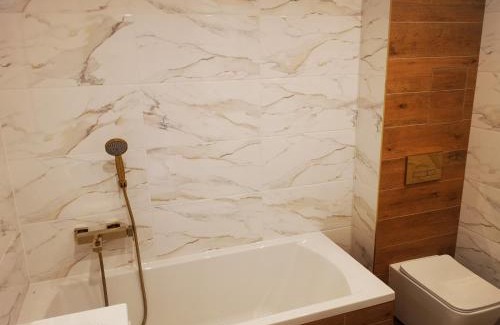 Just a 14-minute walk from Suwalki Train Station and 0.6 miles from Aquapark Suwalki, Apartament Korczaka Centrum features accommodations in Suwałki with a shared lounge. Both free Wifi and parking on-site are available at the apartment free of charge. The accommodation offers a shared kitchen and private check-in and check-out for guests. Offering a balcony and garden views, the apartment includes 1 bedroom, a living room, cable flat-screen TV, an equipped kitchenette, and 1 bathroom with a bath. Towels and bed linen are featured in the apartment. This apartment is allergy-free and non-smoking. Guests at Apartament Korczaka Centrum will be able to enjoy activities in and around Suwałki, like hiking. A children's playground is also available for guests at the accommodation. Hancza Lake is 17 miles from Apartament Korczaka Centrum, while Augustow Train Station is 19 miles away.