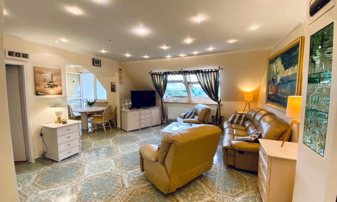 Apartament Michel Marine is located in Międzyzdroje, just 16 miles from Ahlbeck pier and 18 miles from Baltic Hills Golf Usedom. The property is around 10 miles from Świnoujście Train Station, 14 miles from Zdrojowy Park, and 14 miles from Baltic Park Molo Aquapark. The accommodation offers a hot tub, free Wifi throughout the property, and a 24-hour front desk. Offering a terrace and sea views, the spacious apartment includes 2 bedrooms, a living room, satellite flat-screen TV, an equipped kitchen, and 2 bathrooms with a hot tub and a bidet. Towels and bed linen are offered in the apartment. The property has an outdoor dining area. Guests at the apartment will be able to enjoy activities in and around Międzyzdroje, like hiking. Popular points of interest near Apartament Michel Marine include Miedzyzdroje Beach, Miedzyzdroje Walk of Fame, and Kawcza viewpoint.