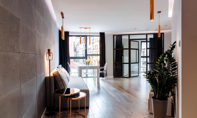 11 miles from Western City in Jelenia Góra, Apartament Miedziany features accommodations with access to beauty services. Free Wifi is available throughout the property and private parking is available on site. The apartment also offers facilities for disabled guests. This apartment includes 1 bedroom, a living room and a flat-screen TV, an equipped kitchen with a dining area, and 1 bathroom with a walk-in shower and a washing machine. Towels and bed linen are offered in the apartment. Additional in-room amenities include wine or champagne. Guests at the apartment will be able to enjoy activities in and around Jelenia Góra, like skiing, cycling, and hiking. If you'd like to discover the area, walking tours and pub crawls are possible in the surrounding area. Dinopark is 12 miles from Apartament Miedziany, while Szklarska Poreba Bus Station is 12 miles from the property. Copernicus Wrocław Airport is 63 miles away.