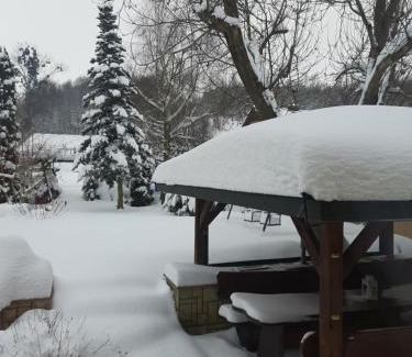 Apartament Nałęczów dom pod orzechami is located in Nałęczów, just 14 miles from Kazimierz Dolny Castle and 19 miles from Krakowskie Przedmieście Street. This property offers access to a terrace and free private parking. Lublin International Fairs is 20 miles away and Lublin Train Station is 20 miles from the apartment. This 1-bedroom apartment comes with a seating area, a flat-screen TV, and a fully equipped kitchen with a dishwasher. Guests can enjoy a meal on an outdoor dining area while overlooking the garden views. For added privacy, the accommodation features a private entrance. A children's playground is also available at the apartment, while guests can also relax in the garden. Czartoryski Palace is 19 miles from Apartament Nałęczów dom pod orzechami, while Sobieski Family Palace is 19 miles away. Lublin Airport is 27 miles from the property.
