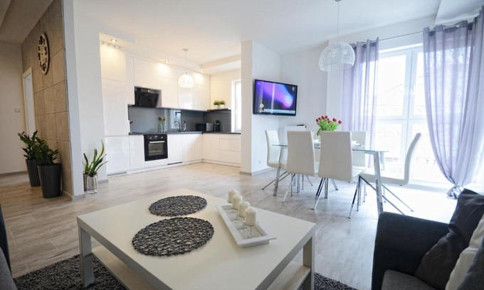 Apartament nad Drwęcą I offers accommodations in Ostróda, 26 miles from Olsztyn Bus Station and 27 miles from Olsztyn Stadium. The property is around a 5-minute walk from Stadium Ostroda, 19 miles from Stadium Lubawa, and 21 miles from Arboretum in Kudypy. There's a terrace and guests can use free Wifi and free private parking. Offering a balcony and quiet street views, the spacious apartment includes 1 bedroom, a living room, satellite flat-screen TV, an equipped kitchen, and 1 bathroom with a walk-in shower. Towels and bed linen are offered in the apartment. The property has an outdoor dining area. Guests can make the most of the warm weather with the property's barbecue facilities. Mazury Golf Country Club is 23 miles from the apartment, while Ukiel Lake is 24 miles from the property. Olsztyn-Mazury Airport is 60 miles away.