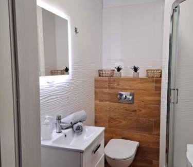 Apartament Osiedle Cypryjskie - Koszalin offers accommodations in Koszalin, 29 miles from Town Hall and 30 miles from Kołobrzeg Railway Station. This property offers access to a balcony and free private parking. Aqua Park Koszalin is 2.6 miles away and Koszalin Train Station is 2.8 miles from the apartment. The apartment is composed of 1 bedroom, a fully equipped kitchenette, and 1 bathroom. A flat-screen TV is featured. The accommodation is non-smoking. Kolberg Pier is 30 miles from the apartment, while Kołobrzeg Lighthouse is 30 miles away. Solidarity Szczecin-Goleniów Airport is 91 miles from the property.
