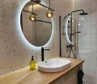 Apartament Ostróda na Mazurach is located in Ostróda, just 25 miles from Olsztyn Bus Station and 26 miles from Olsztyn Stadium. This apartment provides air-conditioned accommodations with a balcony and free Wifi. The accommodation features an elevator and a mini-market for guests. Providing a terrace and lake views, the spacious apartment includes 2 bedrooms, a living room, flat-screen TV, an equipped kitchen, and 1 bathroom with a shower. Towels and bed linen are featured in the apartment. Additional in-room amenities include wine or champagne. For guests with children, the apartment offers outdoor play equipment. Stadium Ostroda is 2.9 miles from Apartament Ostróda na Mazurach, while Stadium Lubawa is 20 miles away. Olsztyn-Mazury Airport is 53 miles from the property.