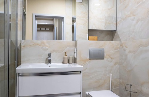 Situated in the business district, this 1-bedroom apartment brings all of Wroclaw within your reach. Fans of nature and the outdoors will love being 7 minutes by car from Lake Morskie Oko and 7 minutes from Słodowa Island. Thanks to the convenient nearby parking, you can either leave your vehicle behind and let your feet make short work of the 14-minute walk to Wroclaw Technology Park, or easily tackle the quick 7-minute drive to Wroclaw Market Square.
