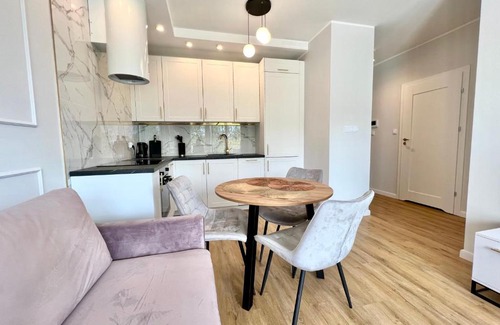 A 12-minute walk from Dziwnów Central Beach in Dziwnów, Apartament Superior & SPA Marina Dziwnów features accommodations with access to a hot tub, fitness room, and indoor pool. This property offers access to a terrace, table tennis, and free Wifi. The apartment provides a pool with a view with a water slide, as well as a sauna and an elevator. The air-conditioned apartment consists of 1 bedroom, a living room, a fully equipped kitchenette with a dishwasher and a coffee machine, and 1 bathroom with a shower and a hair dryer. Towels and bed linen are featured in the apartment. The property has an outdoor dining area. A mini-market is available at the apartment. For guests with children, the apartment offers outdoor play equipment. If you'd like to discover the area, cycling is possible in the surrounding area, and Apartament Superior & SPA Marina Dziwnów can arrange a bicycle rental service. Miedzywodzie Beach is a 12-minute walk from the accommodation, while Eastern Dziwnów Beach is 0.9 miles away.