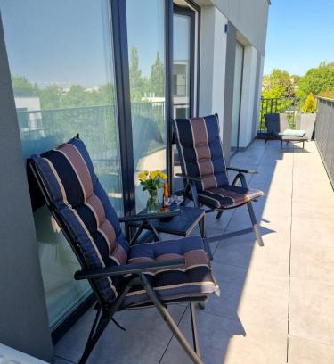 Apartament Turkusowy w Słonecznej Dolinie Jastrzębia Góra offers accommodations in Jastrzębia Góra, a 6-minute walk from Jastrzebia Beach and 26 miles from Gdynia Harbour. This apartment offers free private parking and an elevator. The accommodation features full-day security and private check-in and check-out for guests. Providing access to a terrace with garden views, the air-conditioned apartment consists of 1 bedroom and a fully equipped kitchenette. A flat-screen TV is offered. The accommodation is non-smoking. For guests with children, the apartment provides outdoor play equipment. Shipyard Gdynia is 28 miles from Apartament Turkusowy w Słonecznej Dolinie Jastrzębia Góra, while Gdynia Central Railway Station is 28 miles from the property. Gdańsk Lech Wałęsa Airport is 42 miles away.