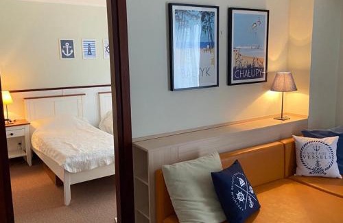 Apartament Villa Baltic - Chalupy is located in Chałupy, just a few steps from Chalupy Beach and 26 miles from Gdynia Harbour. This property offers access to a balcony and free private parking. Shipyard Gdynia is 28 miles away and Gdynia Central Railway Station is 28 miles from the apartment. With free Wifi, this 1-bedroom apartment features a flat-screen TV, a washing machine, and a fully equipped kitchen with a dishwasher and microwave. Towels and bed linen are available in the apartment. The property offers sea views. Guests can relax in the garden at the property. Batory Shopping Center is 29 miles from the apartment, while Kosciuszki Square is 29 miles from the property. Gdańsk Lech Wałęsa Airport is 42 miles away.