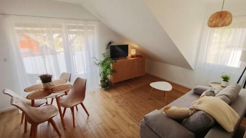 Apartament w Kropli Bałtyku offers accommodations in Darłowo, 1.3 miles from Darłówko East Beach. This property offers access to a balcony and free private parking. The apartment is composed of 1 bedroom, a fully equipped kitchen, and 1 bathroom. A flat-screen TV is provided. The accommodation is non-smoking. Gdańsk Lech Wałęsa Airport is 104 miles away.