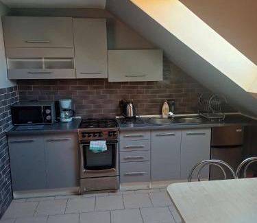 Offering river views, Apartament Wolin nad wodą koło Miedzyzdrojów in Wolin features accommodations, a garden, and barbecue facilities. The apartment, set in a building dating back to 2017, offers free Wifi and free private parking. When staying at the apartment, guests can use private entrance. The units come with parquet floors and feature a fully equipped kitchen with an oven, a dining area, a flat-screen TV, and a private bathroom with bath and a hair dryer. A microwave, a toaster, and fridge are also offered, as well as a coffee machine and a kettle. At the apartment complex, the units have bed linen and towels. Wolin Beach is one mile from Apartament Wolin nad wodą koło Miedzyzdrojów, while Dzika Beach is 1.8 miles from the property.