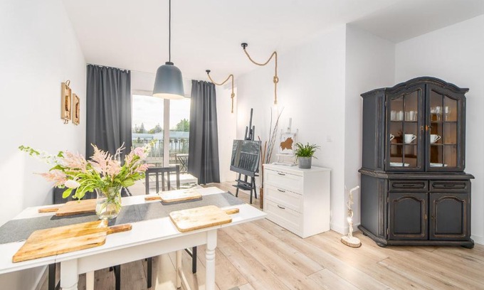 Apartament WOOD SurfingBird Dźwirzyno is located in Dźwirzyno, just a 8-minute walk from Dźwirzyno Beach and 7.4 miles from Kołobrzeg Railway Station. This property offers access to a balcony and free private parking. Kolberg Pier is 7.7 miles from the apartment and Kołobrzeg Lighthouse is 7.8 miles away. With free Wifi, this 1-bedroom apartment provides a flat-screen TV, a washing machine, and a fully equipped kitchenette with a dishwasher and stovetop. Towels and bed linen are provided in the apartment. The property has an outdoor dining area. Breakfast can be enjoyed on-site, which includes pancakes and cheese. A bicycle rental service is available at the apartment, while cycling and hiking can be enjoyed nearby. Town Hall is 7.9 miles from Apartament WOOD SurfingBird Dźwirzyno, while Kolberg Fortress is 6.7 miles away. Solidarity Szczecin-Goleniów Airport is 68 miles from the property.