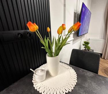A recently renovated apartment, Apartament Z Ogrodem - Paderewskiego 22 offers accommodations in Bartoszyce. This apartment features free private parking, an elevator, and free Wifi. Staff on site can arrange airport transfers. Featuring a terrace and garden views, the apartment includes 1 bedroom, a living room, cable flat-screen TV, an equipped kitchen, and 1 bathroom with a shower. Towels and bed linen are offered in the apartment. This apartment is allergy-free and non-smoking. Guests at the apartment will be able to enjoy activities in and around Bartoszyce, like cycling, fishing, and hiking. Outdoor play equipment is also available at Apartament Z Ogrodem - Paderewskiego 22, while guests can also relax in the garden. Święta Lipka Sanctuary is 26 miles from the accommodation, while Castle of Lidzbark Warmiński is 15 miles from the property.