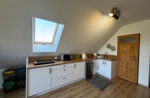2.2 miles from Talki Golf Course in Konopki Małe, Apartament z tarasem i widokiem na las provides accommodations with access to a sauna. This property offers access to a terrace and free private parking. Boyen Fortress is 17 miles away and Indian Village is 18 miles from the apartment. With free Wifi, this 1-bedroom apartment offers a flat-screen TV and a kitchen with a microwave and fridge. Towels and bed linen are featured in the apartment. For added privacy, the accommodation features a private entrance. Guests can also relax in the garden. Olsztyn-Mazury Airport is 71 miles away.