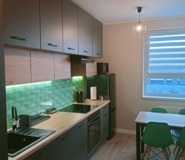 Apartament z Widokiem, wygodny Apartament z sypialnią, kuchnią i salonem, 47m2, bezpłatny garaż is located in Wrocław, just 5.5 miles from Wrocław Cathedral and 5.5 miles from National Museum. This property offers access to a balcony, free private parking, and free Wifi. Outdoor seating is also available at the apartment. This apartment includes 1 bedroom, a living room and a flat-screen TV, an equipped kitchen with a dining area, and 1 bathroom with a bath and a washing machine. Towels and bed linen are featured in the apartment. For added privacy, the accommodation features a private entrance. Racławice Panorama is 5.6 miles from Apartament z Widokiem, wygodny Apartament z sypialnią, kuchnią i salonem, 47m2, bezpłatny garaż, while Centennial Hall is 5.9 miles away. Copernicus Wrocław Airport is 17 miles from the property.