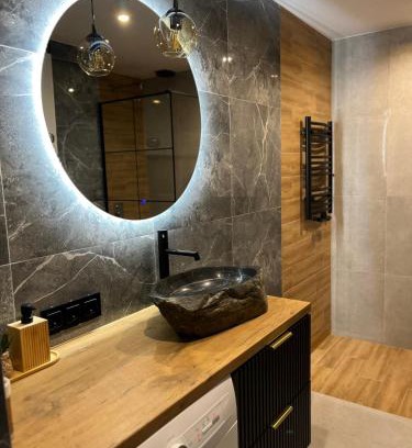 Apartament4you offers accommodations in Giżycko, 28 miles from Święta Lipka Sanctuary and 1.6 miles from Boyen Fortress. The property is around 4 miles from Indian Village, 14 miles from Talki Golf Course, and 22 miles from Wolf's Lair. The apartment also features free Wifi and free private parking. The apartment consists of 1 bedroom, a living room, a fully equipped kitchen with an oven and a kettle, and 1 bathroom with a shower. A flat-screen TV with satellite channels is available. The accommodation has a fireplace. Sailors' Village is 25 miles from the apartment, while Tropikana Aqua Park is 25 miles from the property. The nearest airport is Olsztyn-Mazury Airport, 63 miles from Apartament4you.