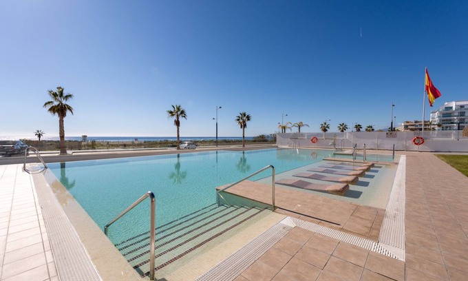 Modern apartment in the new residential of Duna Beach on the ground floor, with communal pool, and first line of beach.